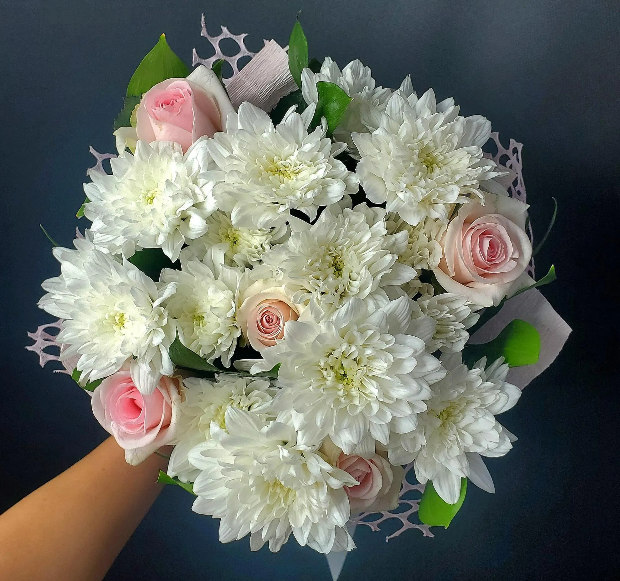Букет из хризантем и роз Элегантное волшебство