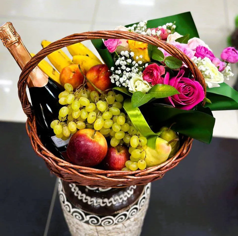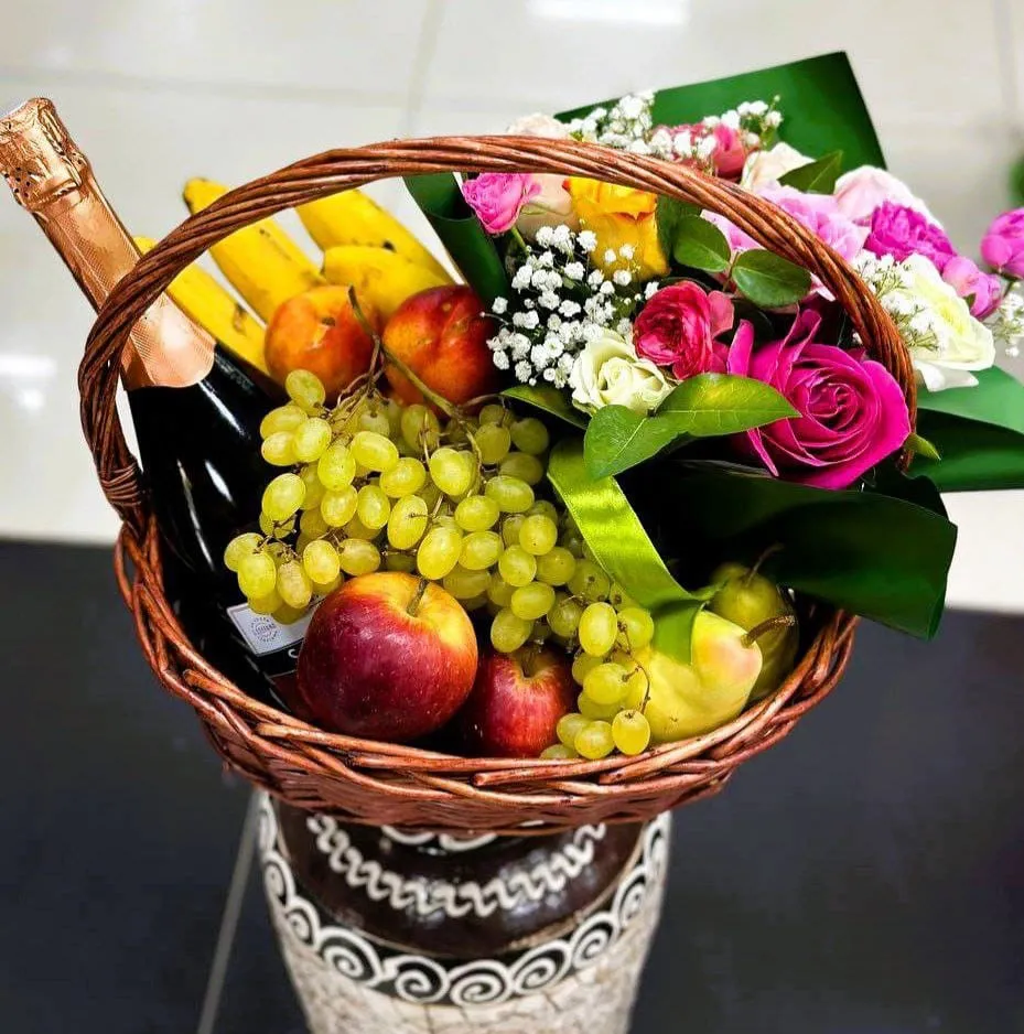 Корзина с фруктами и цветами – это настоящий символ изобилия и красоты. Она не только радует глаз, но и приносит радость в каждый дом. В такой корзине вы найдете яркие, сочные фрукты: солнечные апельсины, сладкие яблоки, спелые бананы и ароматные гроздья винограда. Каждое из этих лакомств наполняет корзину живыми цветами – нежными розами, яркими подсолнухами и элегантными лилиями, создавая гармоничное сочетание.