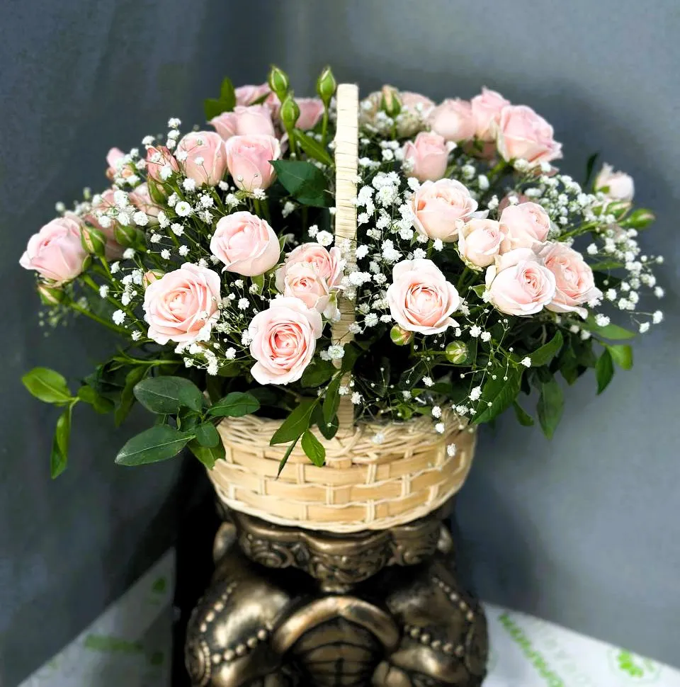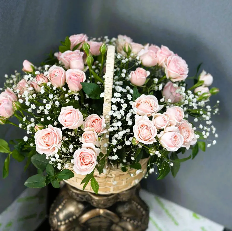 Не упустите возможность порадовать себя или своих близких великолепной корзиной с розами и гипсофилой — ведь красота цветочных композиций всегда создает атмосферу праздника и радости!